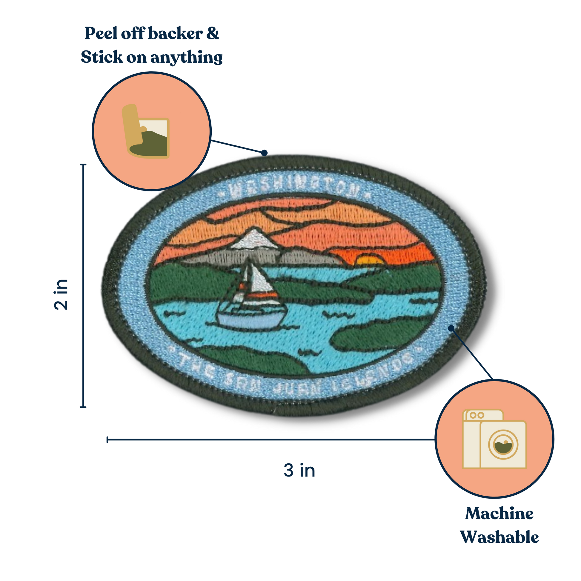 Designed by Washington-based artist Kate George, this patch captures the feeling of wonder and adventure youβll feel navigating the archipelago that comprises the San Juan Islands. Known for its high concentration of marine wildlife, most notably orcas, there is a reason the area has been dubbed by some as Americaβs Marine Serengeti.